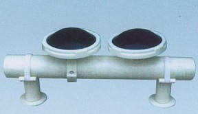 球冠形微孔曝氣器主要由曝氣膜片、支承托盤、螺旋壓蓋、螺紋接咀等部件組成,只要將橡膠膜片套在支承托盤上,用螺旋壓蓋擰緊即可。在安裝時,再把支承托盤(中心有G3/4”內(nèi)螺紋通氣道)裝于布氣管道頂部的螺紋接咀上。